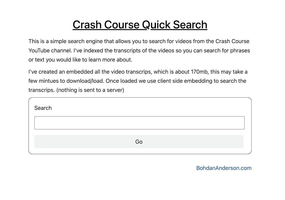 Then, I created embeddings with the same model and embedded them. I overlapped the embedding by two lines; each embedding was just eight lines from the transcript.